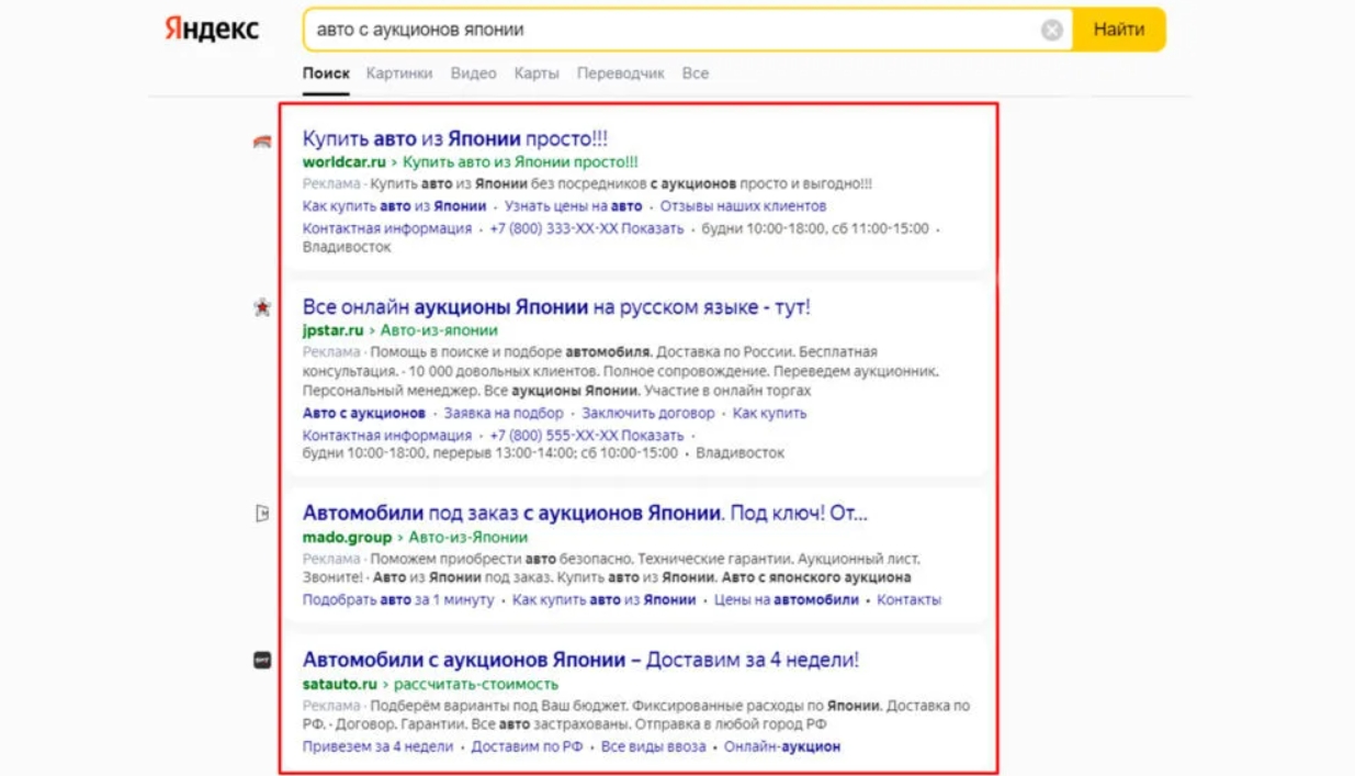 Автомобили из Японии: Как привлечь 310 запросов с помощью Яндекс Директа?